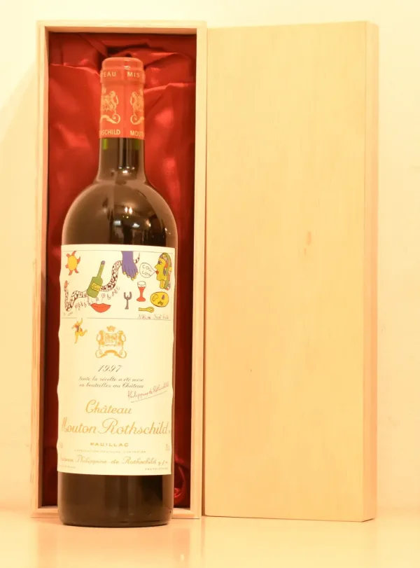 1997年 フランス産1997年 シャトー・ムートン・ロートシルトのヴィンテージワイン。贈り物やギフトに最適な、格調高い生まれ年ワインです。大切にされたボトル入りのお花が箱に包まれた本品は、特別な贈り物としてきっと喜ばれます。