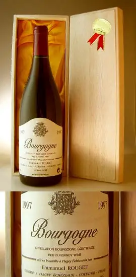 1997年 フランス産1997 エマニエル・ルジェ ブルゴーニュ・ルージュ Emmanuel Rougetのヴィンテージワイン。贈り物やギフトに最適な、格調高い生まれ年ワインです。大切にされたボトル入りのお花が箱に包まれた本品は、特別な贈り物としてきっと喜ばれます。