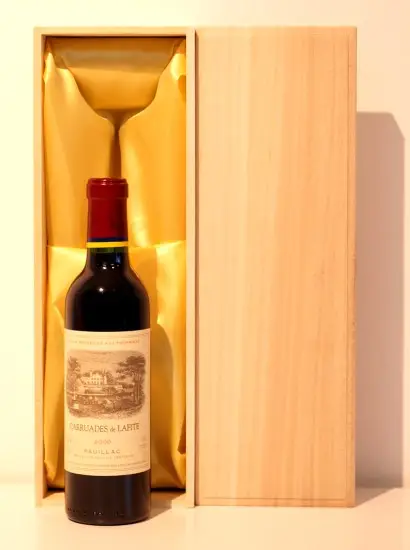 今やボルドー全シャトーの中でもセカンドラベルとしては最も高価な額で取引されるようになった、「シャトー・ラフィット・ロートシルト」のセカンドラベル「カリュアド・ド・ラフィット」の2000年ヴィンテージのハーフボトルです。 2000年は当たり年で、セカンドラベルであるカリュアドもパーカーポイント90点、グランヴァンにおいては98~100点を獲得しています。 ラフィットは現在ボルドーの1級シャトーの中で最も高額で取引されるワイン。ボルドー地方、ポイヤック村では最北端に位置するシャトーで、特に中国での人気が高く、価格は近年鰻上りです。