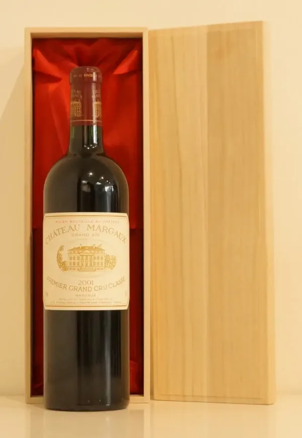 2001年 フランス産2001年 シャトー・マルゴーのヴィンテージワイン。贈り物やギフトに最適な、格調高い生まれ年ワインです。大切にされたボトル入りのお花が箱に包まれた本品は、特別な贈り物としてきっと喜ばれます。