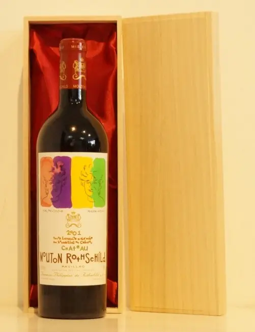2001年のラベルは、ロバート・ウィルソンの作品。アメリカ出身のアーティストで現代演劇界に大きな足跡を残しました。このラベルは作者の友人であるオーナーのロスチャイルド家フィリピーヌ夫人を描いた作品です。