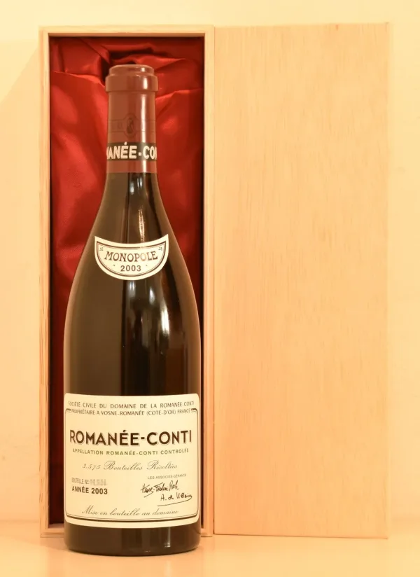 2003年のロマネ・コンティは、ブルゴーニュの歴史的なヴィンテージである1990年や2005年とは異なる、異例のスタイルで知られています。1990年の力強さや2005年のバランスとは対照的に、2003年は温暖な気候による濃厚な果実味と低い酸が特徴です。評論家クライヴ・コーツは、「2003年はピノ・ノワールの典型的なエレガンスとは異なるが、DRCの技術力により唯一無二の存在感を持つ」と評しています。DRCの有機栽培と手作業による選果が、この困難な年でも品質を維持した要因です。