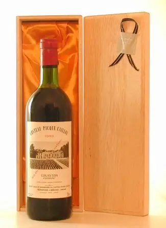 2003年 フランス産2003年 シャトー・ピック・カイユのヴィンテージワイン。贈り物やギフトに最適な、格調高い生まれ年ワインです。大切にされたボトル入りのお花が箱に包まれた本品は、特別な贈り物としてきっと喜ばれます。