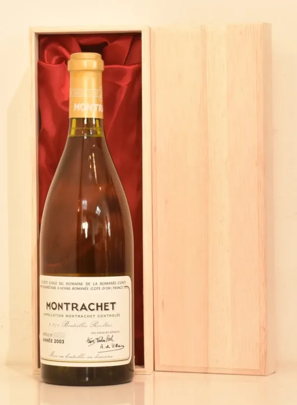 2003年 フランス産2003年 DRC モンラッシェのヴィンテージワイン。贈り物やギフトに最適な、格調高い生まれ年ワインです。大切にされたボトル入りのお花が箱に包まれた本品は、特別な贈り物としてきっと喜ばれます。