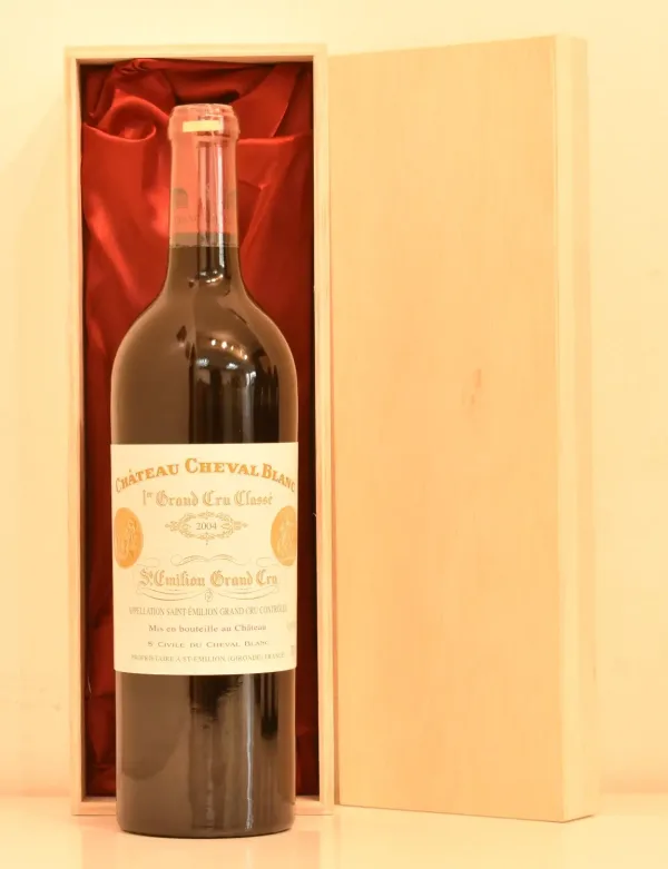 2004年 フランス産2004年 シャトー・シュヴァル・ブランのヴィンテージワイン。贈り物やギフトに最適な、格調高い生まれ年ワインです。大切にされたボトル入りのお花が箱に包まれた本品は、特別な贈り物としてきっと喜ばれます。