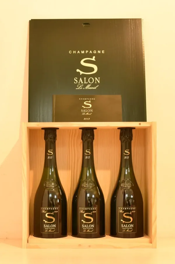 サロン2013は批評家から絶賛されており、アントニオ・ガッローニ(Vinous)からは「今まで味わった中で最もパワフルで濃密な若いサロン」として99点を獲得しました。ジェームズ・サックリングからは「洗練され、長いテクスチャーのイメージ」として97点を得ています。5.5g/Lのドサージュは完璧に判断されており、これまでの涼しい年に特徴的だった若い厳格さをほとんど持たない、スペクタキュラーで現代的なサロンとして評価されています。約60,000本が生産され、現在から長期熟成が可能な卓越したポテンシャルを持っています。