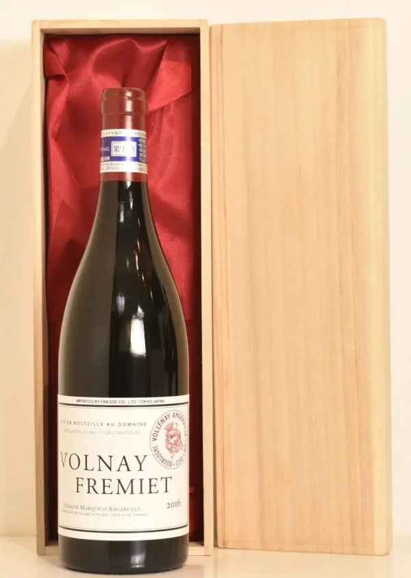 2016年 フランス産2016年 マルキ・ダンジェルヴィーユ ヴォルネイ プルミエ・クリュ レ・フレミエのヴィンテージワイン。贈り物やギフトに最適な、格調高い生まれ年ワインです。大切にされたボトル入りのお花が箱に包まれた本品は、特別な贈り物としてきっと喜ばれます。